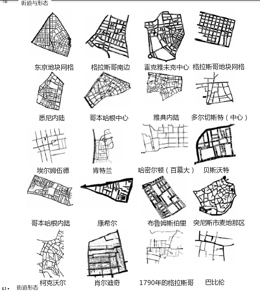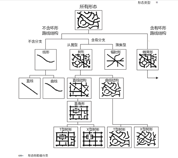 另一些分類法模式側重于城市街道的形態學,馬歇爾在《街道與形態》里對此有詳細論述: