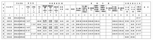 智城一路為避開K1+110處的民宅,采用了壓縮人行道、非機(jī)動(dòng)車道及側(cè)綠化帶的方法,為避開K0+660處建筑物、K1+400~K1+900處茂名第一中學(xué)及茂名職業(yè)技術(shù)學(xué)院圍墻、K2+380~K2+580處村莊、K3+500~K3+800處村莊、K4+200~K4+300處村莊、接順K4+930處現(xiàn)狀新湖路及終點(diǎn)處325國(guó)道預(yù)留路口位置,共設(shè)置了7個(gè)轉(zhuǎn)點(diǎn),具體的平曲線參數(shù)如下表所示: